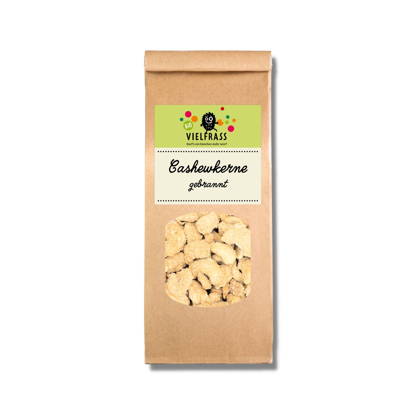 Den Klassiker gebrannte Mandeln kennt wohl jeder von Kirmes, Weihnachtsmarkt und Co. Doch dem VIELFRASS, der immer auf der Suche nach neuen Ideen ist, sind Klassiker meist zu langweilig. So hat er seine heiß geliebten Cashewkerne aus unserem Projekt in Burkina Faso ebenfalls in einen knusprig-süßen Mantel gesteckt ... und das alles in liebevoller Handarbeit, um die empfindlichen Nüsse auch ja nicht zu beschädigen. Lass es dir schmecken!